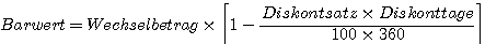 Barwert ergibt sich, indem vom Nennwert des Wechsels