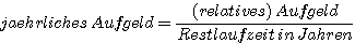 Um auch die Vergleichbarkeit von Optionsscheinen unterschiedlicher Restlaufzeiten zu ermöglichen, kann das relative Aufgeld auch als Aufgeld in Prozent pro Jahr ausgedrückt werden.