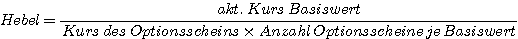 Tatsächlich besagt der Hebel nur, wieviel teurer der Erwerb z.B. einer Aktie im Vergleich zum Kauf eines Optionsscheins auf diese Aktie ist.