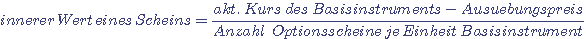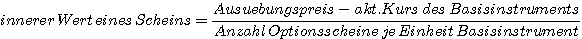 innere Wert ergibt sich aus der Differenz zwischen dem Ausübungspreis