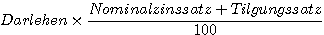 Die Zinsberechnung erfolgt analog. Zinsen für einen Monat werden ermittelt, indem auf die Restschuld am Monatsanfang ein Zwölftel der nominellen Jahreszinssatzes angewandt wird.
