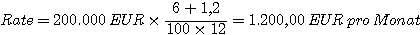 Die zu zahlende Ratenhöhe ergibt sich, indem diese Jahresleistung durch die Anzahl der Raten pro Jahr dividiert wird.