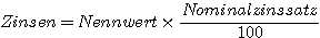 Er wird auf den Nennwert der Anleihe angewandt und dient der Ermittlung der Zinsbeträge, die der Gläubiger empfangen kann. Im Beipiel ist der Nominalzinssatz von 6,25 % auf den Nennwert von 10.000 Euro anzuwenden.